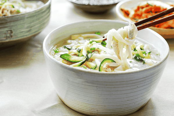 - Kalguksu – Mì dao Hàn Quốc: Sợi mì mềm mịn, nước dùng hầm từ xương gà hoặc bò, ăn kèm thịt, nấm hoặc bánh bao hấp.