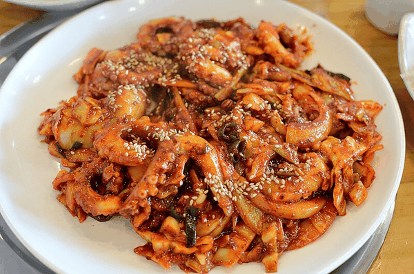 - Nakji Bokkeum – Bạch tuộc xào cay: Bạch tuộc tươi xào với tỏi, ớt, tương cay, đậm đà, ngon nhất khi ăn cùng cơm trắng hoặc rau sống.