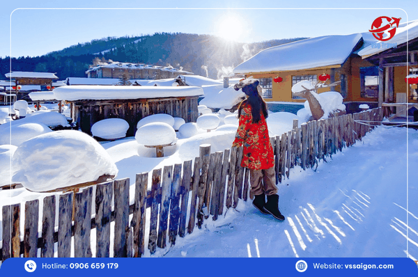 Tiếp tục hành trình đến Làng Tuyết Hương (Hải Lâm), nơi được mệnh danh là “Tuyết Hương Đệ Nhất Trung Quốc” (khoảng 2 tiếng đi xe). Trên đường đi, Quý khách có thể chiêm ngưỡng khung cảnh mùa đông tuyệt đẹp với những hàng cây thông và bạch dương phủ đầy tuyết trắng.